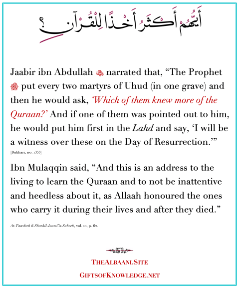 The point is a Muslim needs to think about the pact he has with his Lord. The Shaikh of Islaam [Ibn Taymiyyah] says that reciting the Quraan as has been prescribed gives a believer’s heart knowledge, certainty, faith and tranquility which can only be envisaged or grasped by someone who has [actually] done so.”